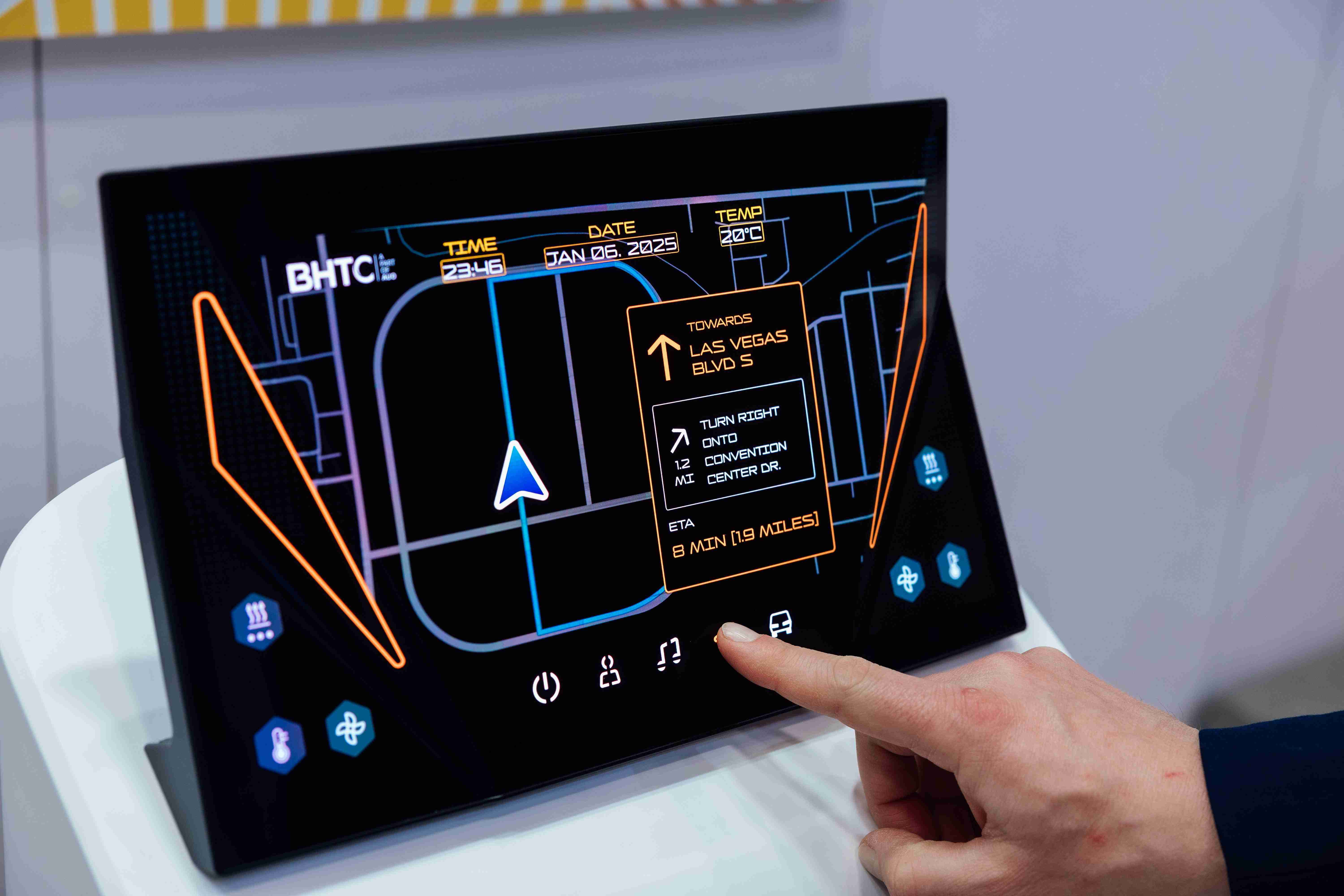 Micro LED可折迭触控显示器(Haptifold Display)结合BHTC多年HMI设计经验,,,整合中控台和温度控制功能,,,,以优美的曲面和独特的外型助力车内设计美学,,在辅以触控回馈下,,,为驾驶带来更直觉的使用体验。。
