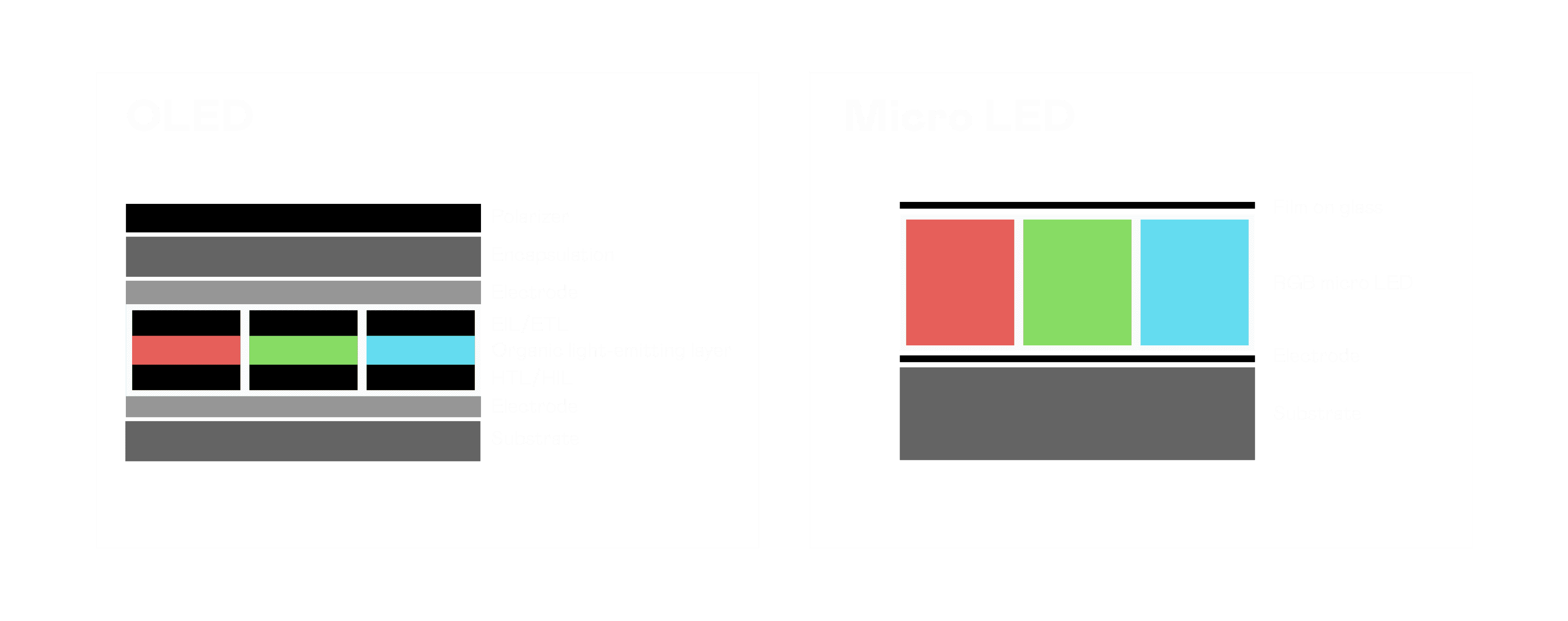 以 LED 做为显示画素,,,,可让 LED 的发光效率发挥到极致,,,,从而让显示器具备优异的亮度表现,,,,不论是在户外或室内,,,均具备出众的显示效果。。。同时,,,与使用有机材料的 OLED 相比,,,,LED 具备更稳定、、、、寿命更长的特性,,,,不仅不会有画面烙印问题,,,而且更不容易出现故障、、坏点。。。。