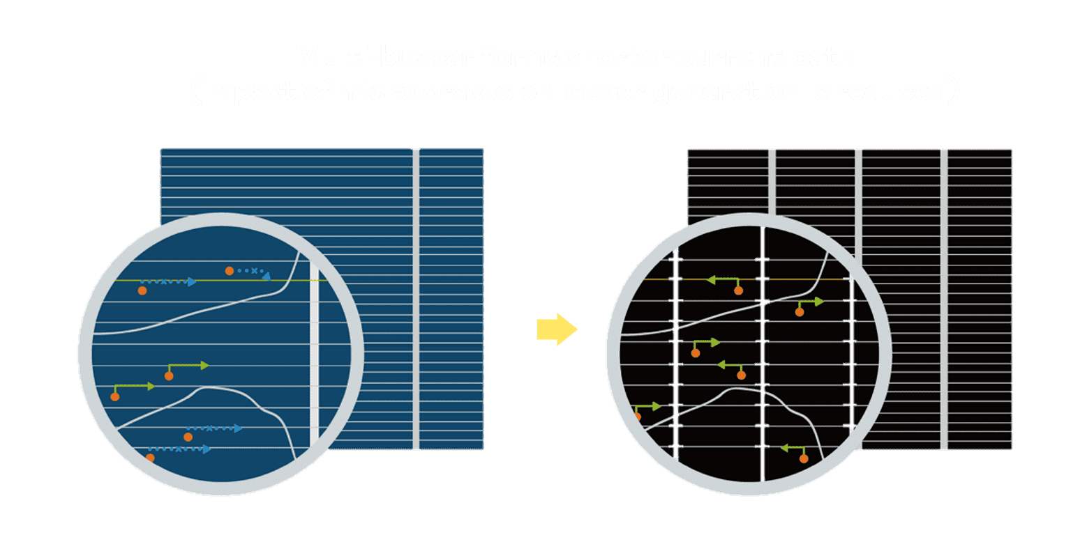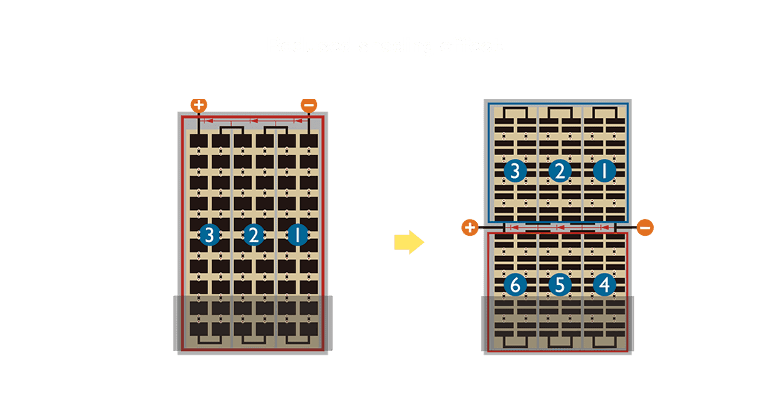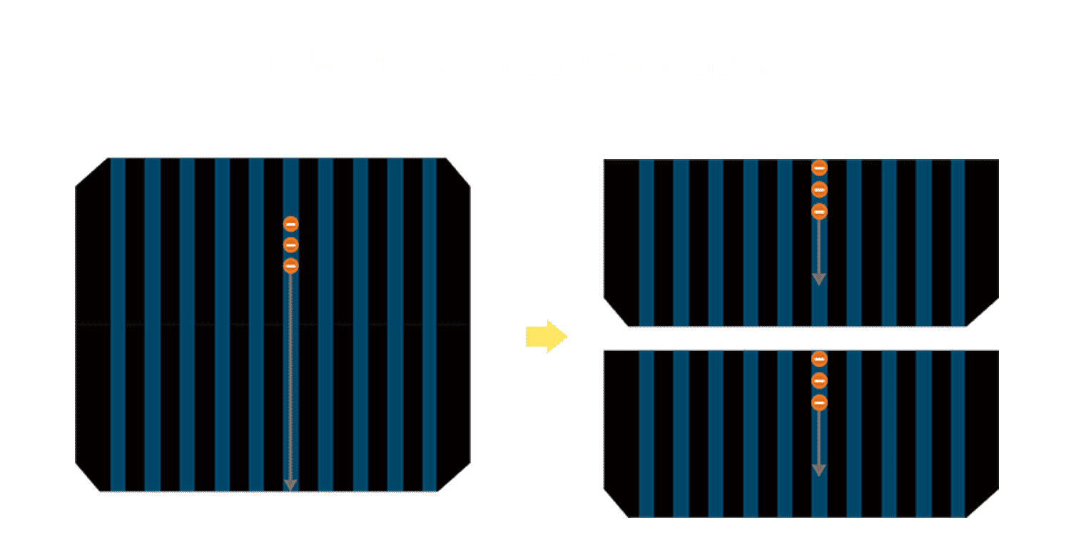 - 结合半切电池,,降低遮阴影响、、、提升模组抗隐裂能力、、、并减少电阻损耗,,进一步提升模组发电效能。。
